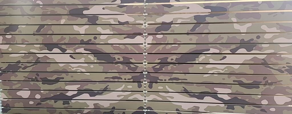 This army colored slatwall panel inspired the 3D concept and the final gun‑display systems. Precision metalwork, patriotic style, and industrial durability all combine into a powerful display system that works in any environment.